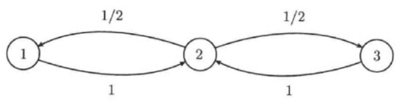 随机游走的“路径生成” 从某个初始节点 $ i $ 出发,按照概率矩阵 $ P $ 随机选择下一个节点 $ i_1 $,再从 $ i_1 $ 选 $ i_2 $,……,生成一条随机路径 $ i \to i_1 \to i_2 \to \dots \to i_k $。