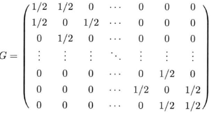 定义“随机路径”的概率规则 构造概率矩阵 $ P $:$ P(i,j) = \frac{|B(i,j)|}{\sum_{j} |B(i,j)|} $(第 $ i $ 行的元素是从节点 $ i $ 走到节点 $ j $ 的概率)。 同时构造权重矩阵 $ W $:$ W(i,j) = \frac{B(i,j)}{P(i,j)} $(路径的“权重”,用来还原 $ B $ 的实际数值)。